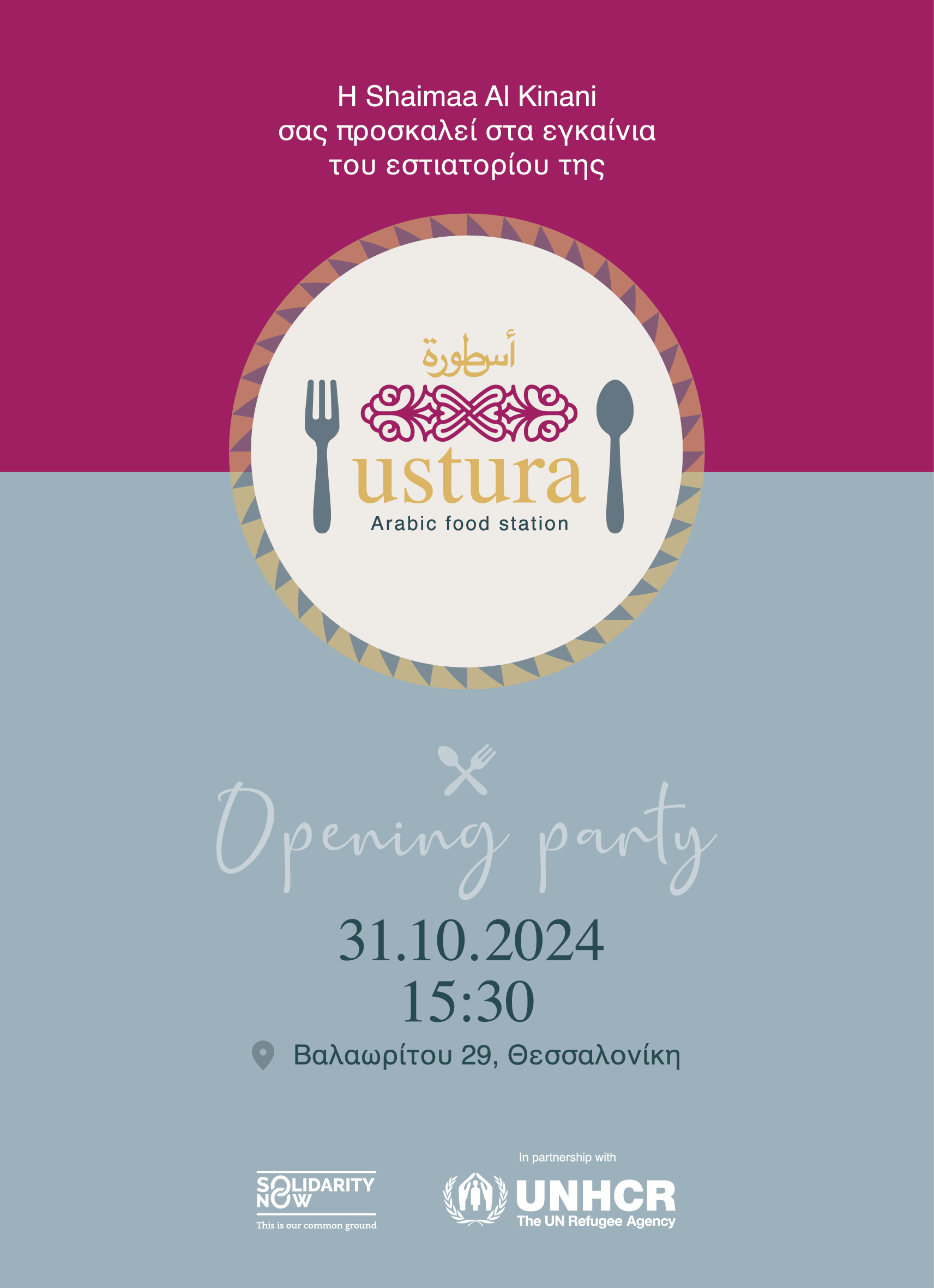 Therefore, together, Shaimaa and the partners from SolidarityNow and UNHCR invite the residents of Thessaloniki to a celebration for the opening of her restaurant, which is also an invitation to a celebration of cultures, acceptance, and recognition!