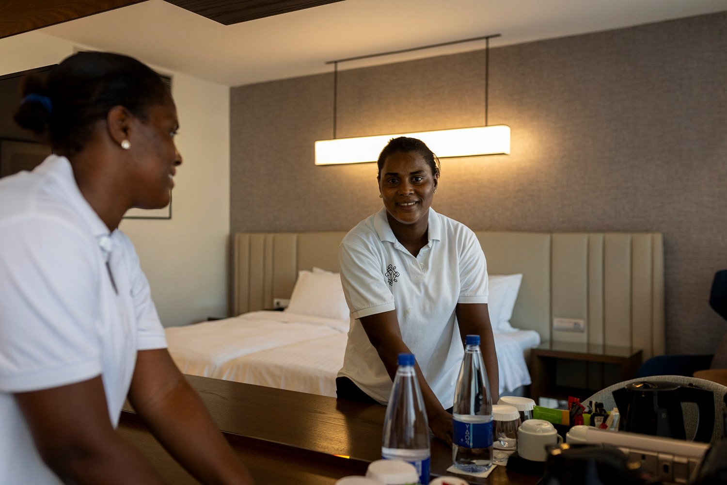 The hotel’s Human Resources manager, who hired her, describes how impressed she was with Binta’s Greek language skills, especially considering the relatively short time she has been in the country.